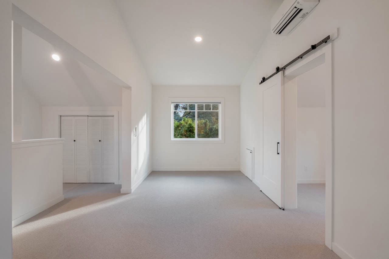 - Queen Anne Carriage House Conversion: An existing outbuilding transformed into a cozy and functional DADU. The remodel includes a kitchenette, enclosed glass shower, sleeping loft accessed via a modular ladder, and salvaged wood paneling to retain a rustic charm. Skylights and custom windows were added to enhance natural light.